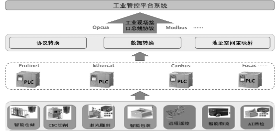 工業(yè)現(xiàn)場設(shè)備種類繁多,接口和總線協(xié)議不統(tǒng)一,多數(shù)工業(yè)現(xiàn)場設(shè)備是非標(biāo)總線接口和非標(biāo)總線協(xié)議。為了實(shí)現(xiàn)設(shè)備的互聯(lián)互通,實(shí)現(xiàn)設(shè)備數(shù)據(jù)采集,通過協(xié)議兼容將不同的網(wǎng)絡(luò)和通信協(xié)議統(tǒng)一映射成統(tǒng)一協(xié)議,各種網(wǎng)絡(luò)和協(xié)議之間通過統(tǒng)一協(xié)議實(shí)現(xiàn)信息的交互。協(xié)議兼容的過程就是講異種通信協(xié)議通過協(xié)議轉(zhuǎn)換、數(shù)據(jù)轉(zhuǎn)換、地址空間重映射等技術(shù)手段轉(zhuǎn)換成統(tǒng)一協(xié)議。工業(yè)現(xiàn)場常用的總線協(xié)議包括 Profinet、Profibus、CClink、EthernetIP、Modbus、FOCAS等,后續(xù)可以考慮以統(tǒng)一協(xié)議實(shí)現(xiàn)承載。