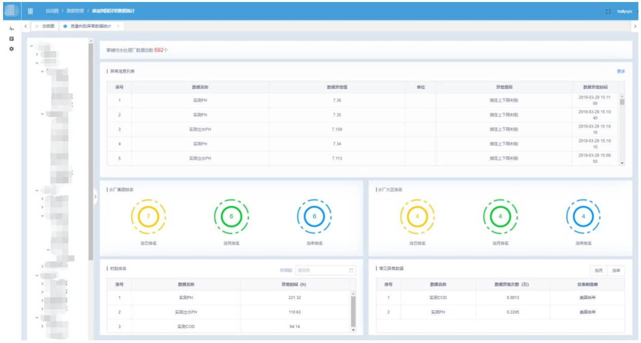 判別異常的數(shù)據(jù)通圖形化方式展示,通過對(duì)異常數(shù)據(jù)的統(tǒng)計(jì)分析,延長(zhǎng)設(shè)備和儀表使用壽命,降低設(shè)備維護(hù)成本,擇優(yōu)選擇更可靠的品牌產(chǎn)品。在地圖上看到所有污水廠分布以及在線情況,多維度對(duì)異常數(shù)據(jù)進(jìn)行統(tǒng)計(jì),全方位剖析數(shù)據(jù)異常統(tǒng)計(jì)情況。
