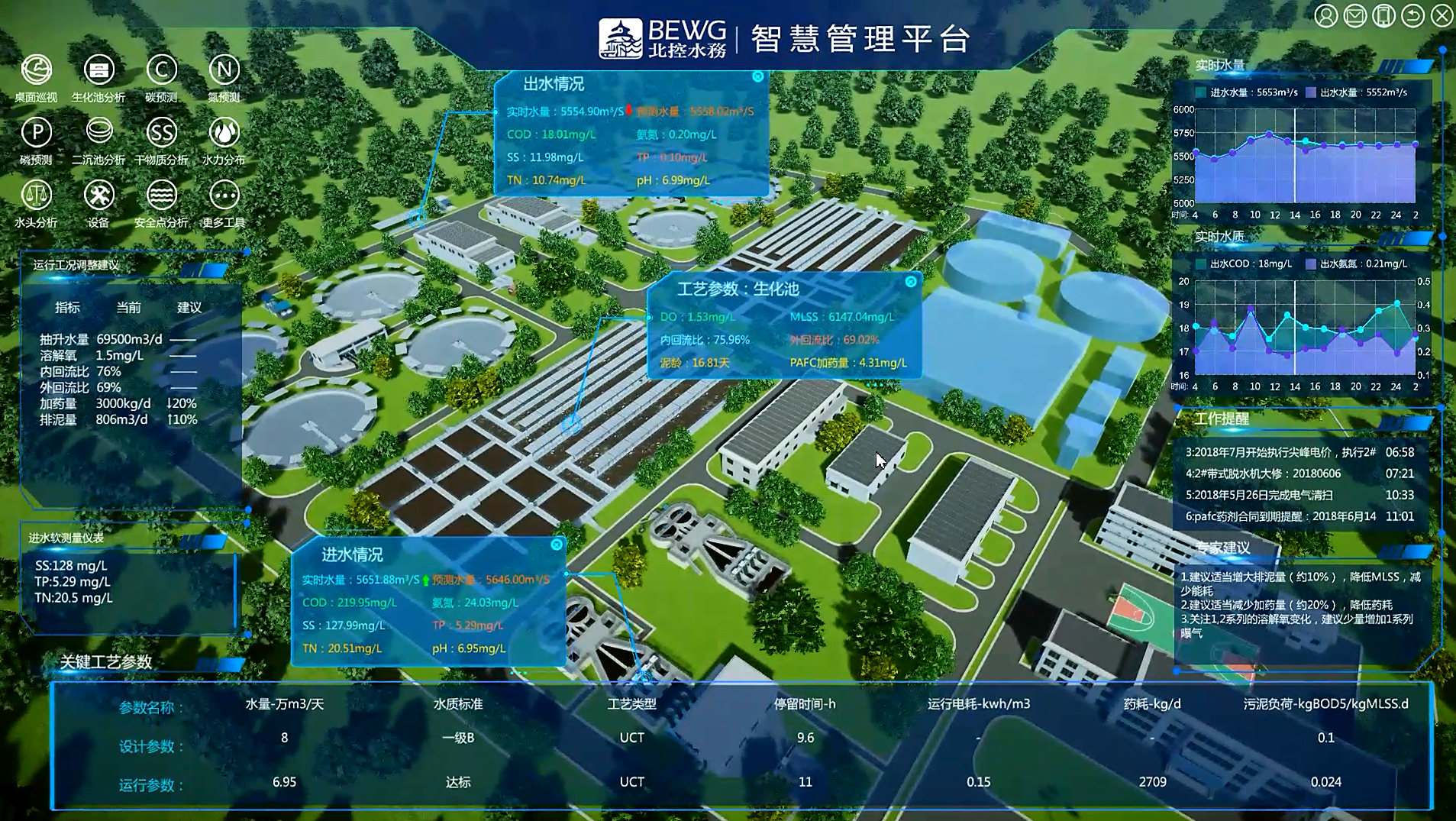 通過智慧水務(wù)運(yùn)營(yíng)管理平臺(tái)BECloudTM的建設(shè),能夠在污水處理環(huán)節(jié)快速、全面融入北控水務(wù)在運(yùn)營(yíng)管理上的成熟理念和豐富經(jīng)驗(yàn),利用人工智能和大數(shù)據(jù)、云平臺(tái)等先進(jìn)技術(shù),配套建設(shè)、應(yīng)用集智能感知、智能預(yù)警、智能調(diào)度、智能處置和智能服務(wù)等智慧化功能于一體智慧水務(wù)運(yùn)管系統(tǒng);通過將水務(wù)機(jī)理模型和大數(shù)據(jù)科學(xué)相結(jié)合,深入發(fā)掘海量工業(yè)數(shù)據(jù),揭示傳統(tǒng)技術(shù)方式難以展現(xiàn)的關(guān)聯(lián)關(guān)系,提升整體數(shù)據(jù)分析能力,為有效處理復(fù)雜運(yùn)管問題提供新的手段,實(shí)現(xiàn)水廠智能預(yù)測(cè)和決策支持、工藝優(yōu)化、精確控制、無(wú)人值守等功能提供平臺(tái)支撐。