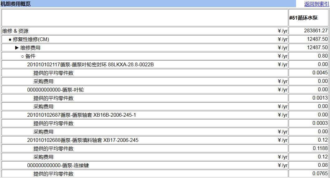 通過制定各設(shè)備的拆解結(jié)構(gòu)關(guān)系,失效原因分類,不同部件的可靠性壽命時間,檢修成本等,并與實際檢修記錄相結(jié)合,建立以可靠性為中心的維護(hù)優(yōu)化策略,通過調(diào)整和比對不同的檢修方案,優(yōu)化現(xiàn)有的檢修策略,達(dá)到消除設(shè)備欠修,避免設(shè)備過修的目的,在整體保障設(shè)備可靠性的同時,降低檢修費用。為設(shè)備的經(jīng)濟性提供了支撐。