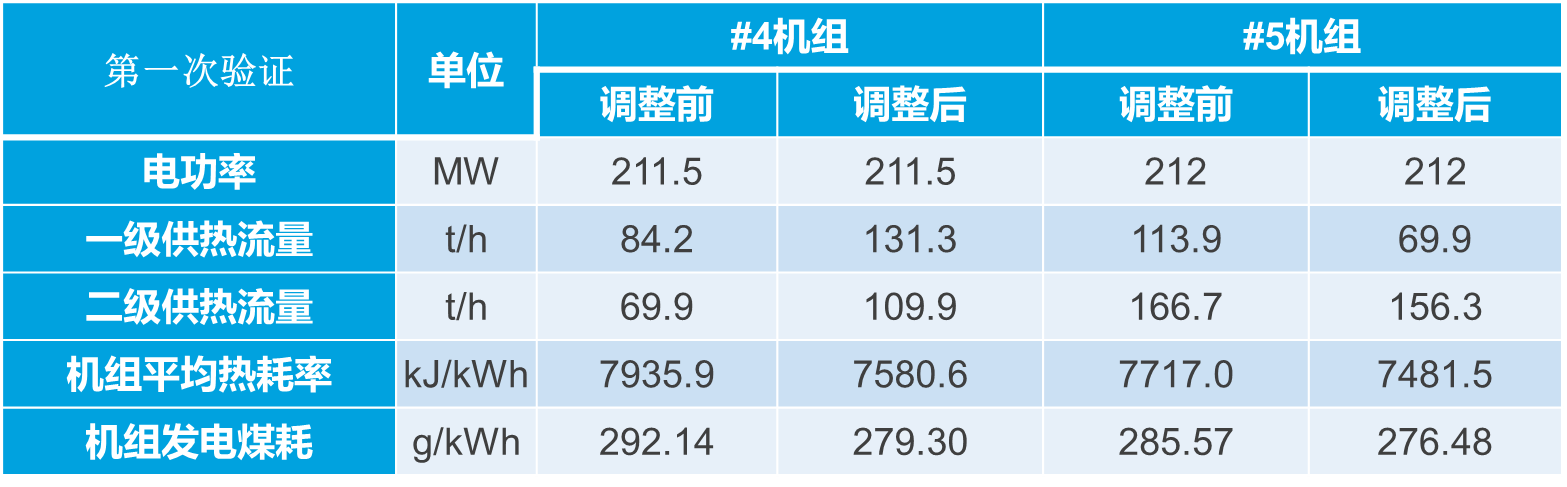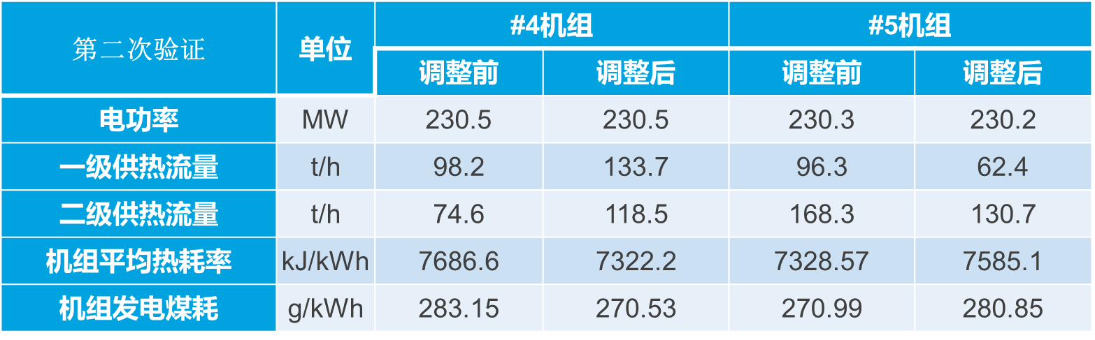 實時負(fù)荷分配模塊2019年8月22日在化工園的#4和#5機組進(jìn)行了實時負(fù)荷分配的試驗,分別進(jìn)行了單機電負(fù)荷210MW、230MW下供熱負(fù)荷轉(zhuǎn)移的實時負(fù)荷優(yōu)化效果驗證。試驗效果如下表所示,結(jié)果表明:扣除供熱變化因素,優(yōu)化節(jié)能量折合標(biāo)煤1.8t/h,210MW下供熱負(fù)荷轉(zhuǎn)移的試驗結(jié)果,優(yōu)化后的約合全廠發(fā)電煤耗下降4.25g/kWh,230MW下供熱負(fù)荷轉(zhuǎn)移的試驗結(jié)果表明,優(yōu)化后的約合全廠發(fā)電煤耗下降2.05g/kWh。實際節(jié)能量根據(jù)負(fù)荷、工況不同,較平均分配有1~5g/kWh的下降。