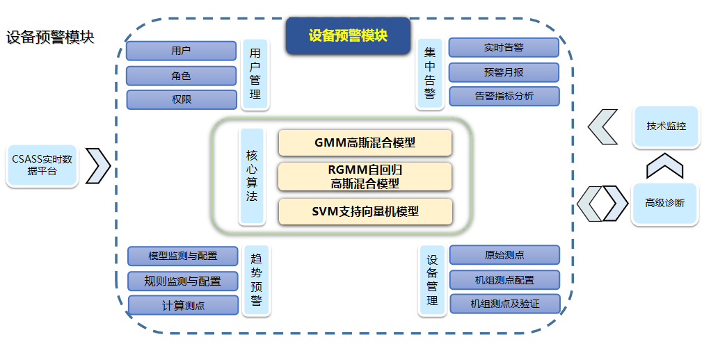 2、CSASS分析專家系統(tǒng)依托云平臺設(shè)計了設(shè)備預(yù)警、高級診斷、RCM、自動優(yōu)化、能耗分析、負(fù)荷優(yōu)化、燃料分析、技術(shù)監(jiān)控等8大功能應(yīng)用模塊和一個大數(shù)據(jù)分析模塊,功能應(yīng)用模塊圍繞提高機組運行的經(jīng)濟性、可靠性和快速性等方面設(shè)置,使得機組能夠在確保安全、環(huán)保性的同時提高運營管理水平。