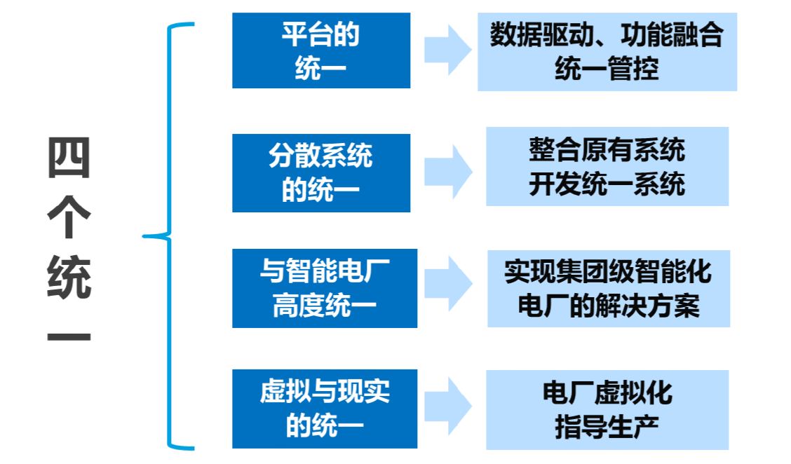 5、整合現(xiàn)有資源,形成統(tǒng)一互聯(lián)網(wǎng)平臺,完成數(shù)據(jù)驅(qū)動、功能融合的統(tǒng)一管控、整合原有系統(tǒng)并開發(fā)統(tǒng)一系統(tǒng)、實現(xiàn)集團級智能化電廠的解決方案、電廠虛擬化指導(dǎo)生產(chǎn)。