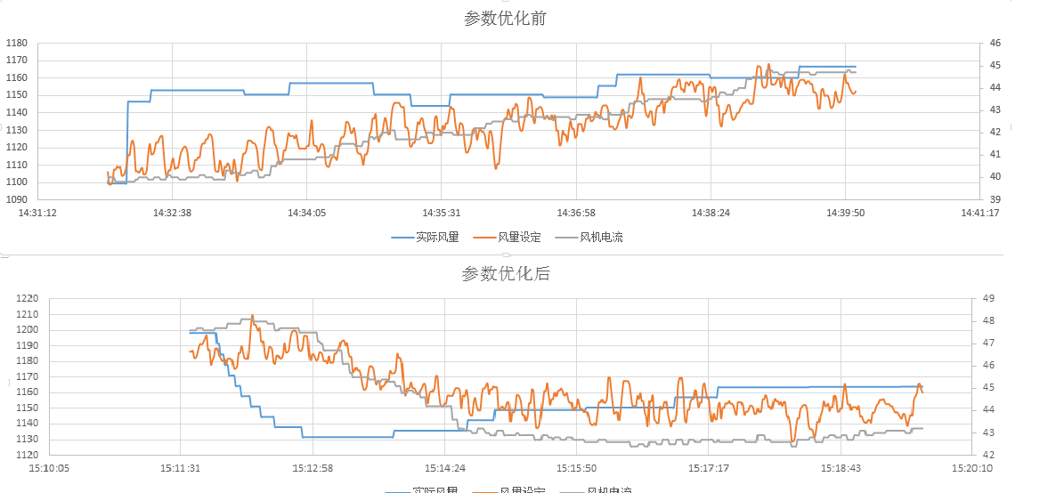 圖22 優(yōu)化前后的氧量分布,優(yōu)化后氧量控制更準(zhǔn)確