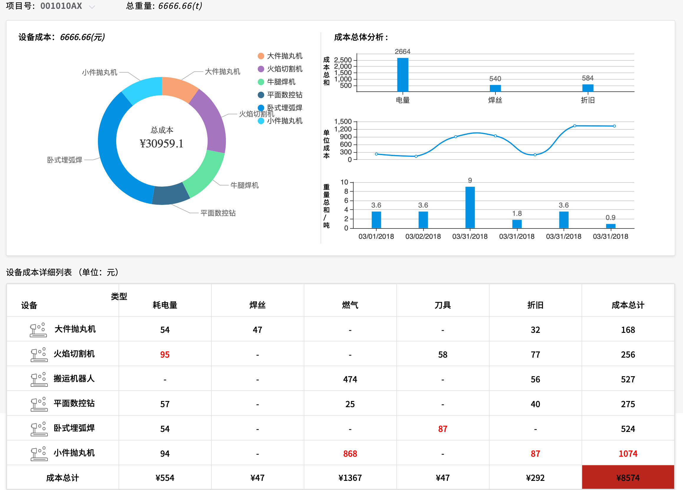 分別以構件、設備為維度進行成本消耗分析,找到高成本設備與高成本構件;