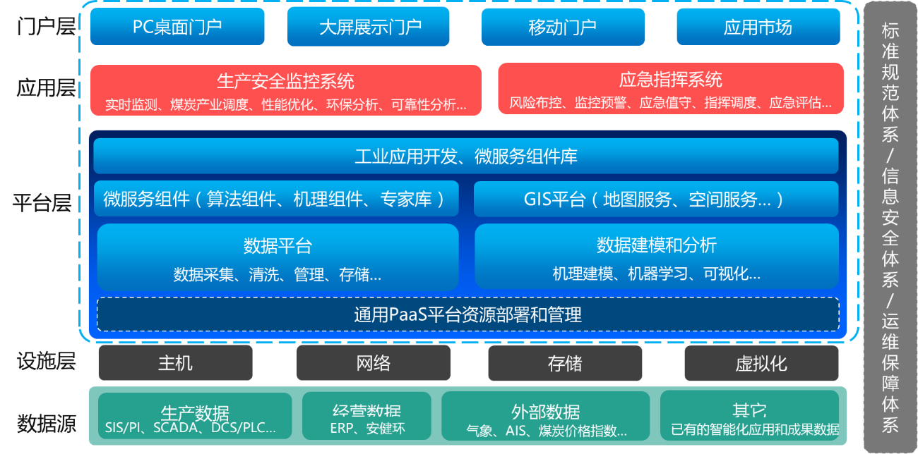 項(xiàng)目基于工業(yè)互聯(lián)網(wǎng)平臺(tái),建設(shè)了覆蓋集團(tuán)全產(chǎn)業(yè)、生產(chǎn)各專業(yè)的縱向貫通、橫向協(xié)同的生產(chǎn)安全監(jiān)控系統(tǒng)和應(yīng)急指揮系統(tǒng),實(shí)現(xiàn)了煤炭供應(yīng)鏈調(diào)度和燃燒優(yōu)化應(yīng)用以及應(yīng)急管理全流程應(yīng)用等創(chuàng)新型應(yīng)用。項(xiàng)目簡(jiǎn)介如下: