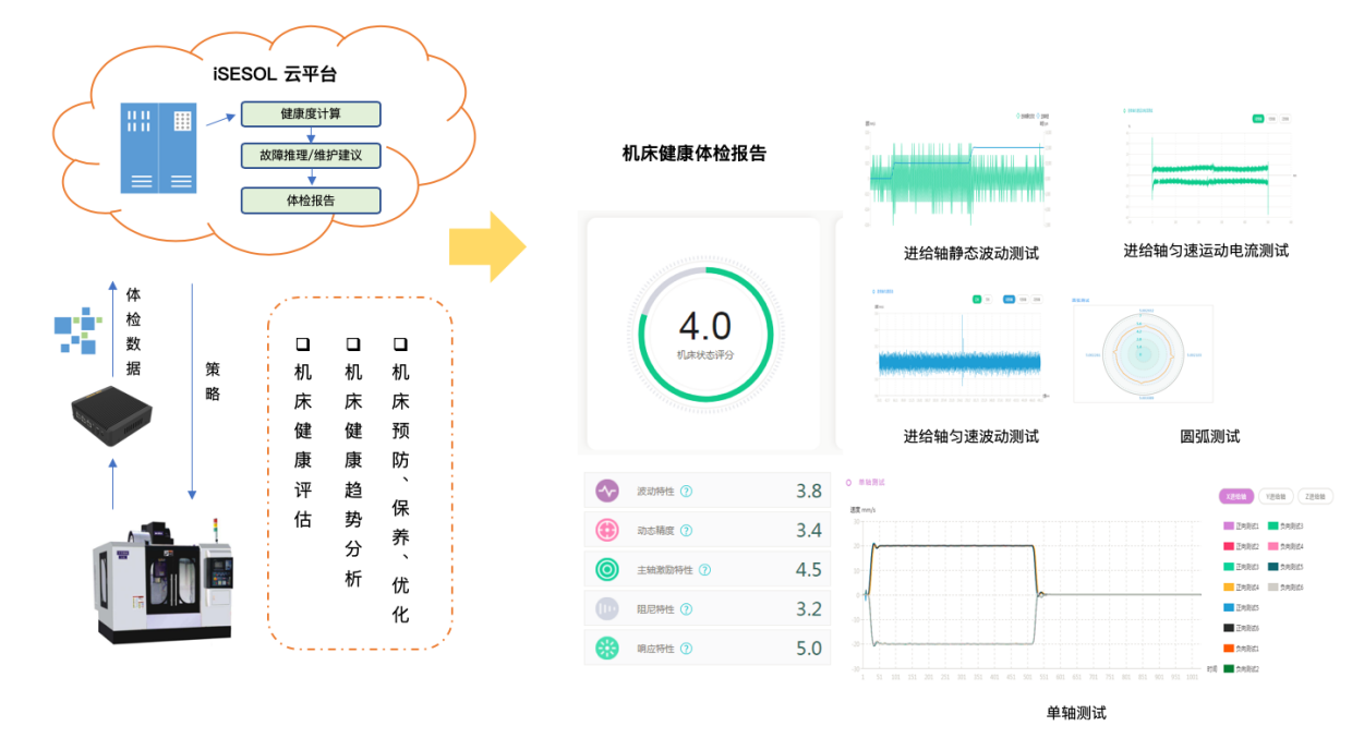 圖4 iSESOL 機床體檢應用模式及報告展示示意圖