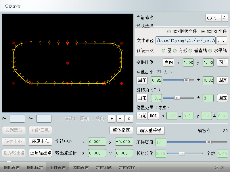 視覺識別App以組合的直線、圓弧、圓來描述待定位工件表面形狀特征。形狀特征可以通過在CAD軟件中簡單繪制后導入模型文件(DXF格式),也可使用預設的形狀,或在視覺識別App中來組合形狀。