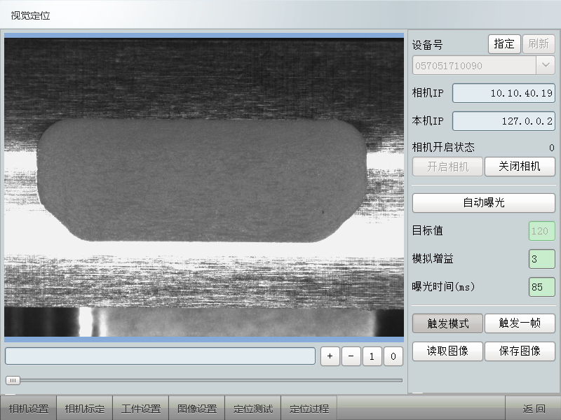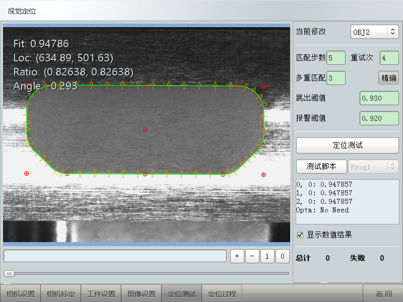 5、定位測試,用于驗證標定和圖像等參數設置是否正確,定位測試會顯示是否匹配成功以及匹配效果。