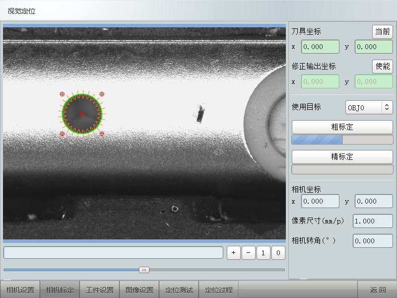 2、相機標定,用于設置刀具坐標,提供易于操作的界面,建立機床坐標系和圖像坐標系的關系。