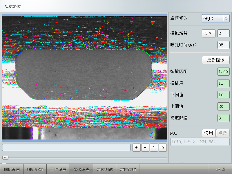 4、圖像設置,用于設置圖像的相關參數,使特征更加易于識別,系統也提供了一些推薦的參數,便于快速設置。