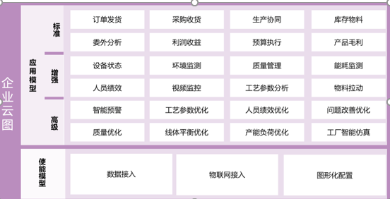APP具備從業(yè)務應用場景出發(fā)的應用模型和用于數(shù)據(jù)接入與處理的使能模型。數(shù)據(jù)接入廣泛支持各類設備及信息系統(tǒng);數(shù)據(jù)展現(xiàn)具備豐富圖形組,支持自定義;應用模型包含智能的交付、物流、生產(chǎn)、監(jiān)控、質(zhì)量、設備管理等板塊,支持工廠運行規(guī)則的重用與繼承擴展,且支持多級數(shù)據(jù)監(jiān)測策略與預測模型配置。