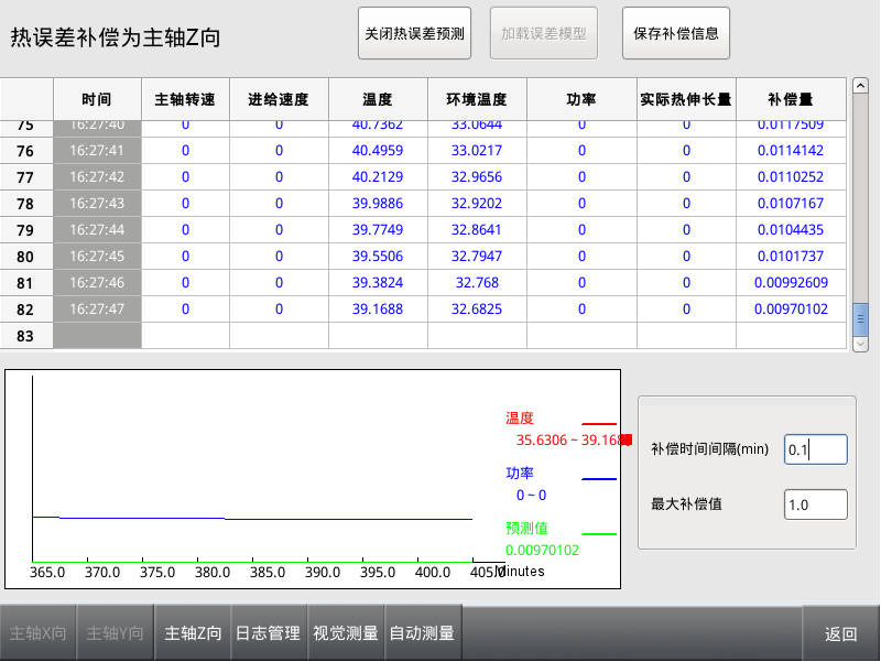 4、日志管理:自動保存補償時間、溫度、主軸轉速和預測值,以便以后的數據分析及問題追溯;