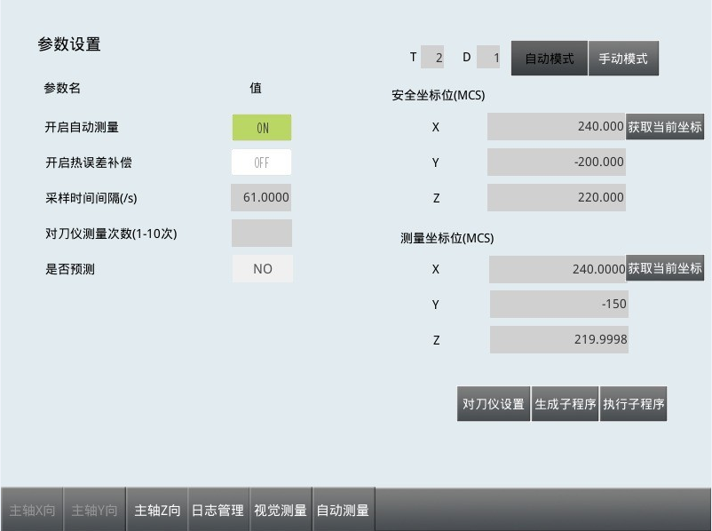 1、熱伸長自動采集:通過App與PLC的交互,控制對刀儀在每個采集周期內執行自動測量子程序,獲得當前刀尖點Z向坐標反饋給App,App自動計算相對于冷態下的熱伸長量;涉及到的技術是PLC處理邏輯的編寫。
