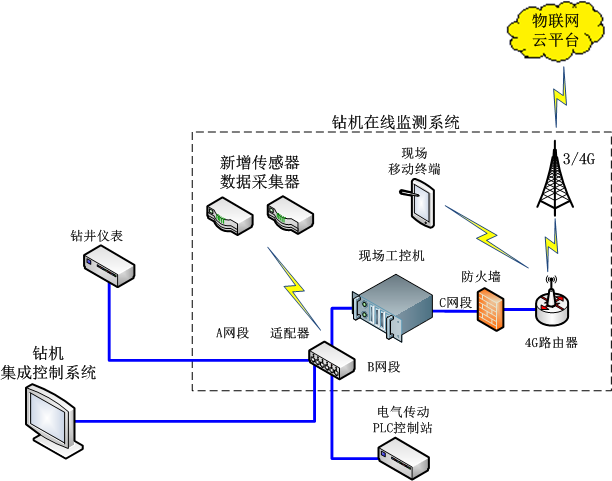 通過(guò)寄云NeuSeer Edge工業(yè)網(wǎng)關(guān),從鉆機(jī)集成控制系統(tǒng)、鉆井儀表、電氣傳動(dòng)PLC控制站以及新增的各種狀態(tài)傳感器等控制系統(tǒng)和傳感器中,通過(guò)OPC UA、ModBus、CAN、Profibus/Profinet等通信接口,讀取鉆井工藝參數(shù)、設(shè)備運(yùn)行參數(shù)、運(yùn)維管理參數(shù)等信息,通過(guò)MQTT發(fā)送到物聯(lián)網(wǎng)平臺(tái)。