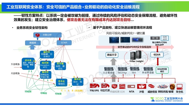“工業(yè)互聯(lián)網(wǎng)存在漏洞開(kāi)放、威脅情報(bào)價(jià)值低、難以人工運(yùn)維等特點(diǎn),存在大量不確定風(fēng)險(xiǎn)。通過(guò)各種安全產(chǎn)品的疊加,無(wú)法實(shí)現(xiàn)安全保障目標(biāo)。必須基于“韌性方法論”,通過(guò)建立“業(yè)務(wù)信任、威脅防御、動(dòng)態(tài)運(yùn)維”安全體系,構(gòu)建業(yè)務(wù)安全保障流程,才能發(fā)揮安全的系統(tǒng)化優(yōu)勢(shì),有效保障工業(yè)互聯(lián)網(wǎng)安全?!?/p>