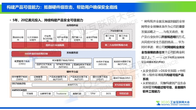 8月30日下午,在2020工業(yè)互聯(lián)網(wǎng)大會(huì)“工業(yè)互聯(lián)網(wǎng)安全”主題論壇上,華為技術(shù)有限公司安全領(lǐng)域解決方案首席架構(gòu)師王雨晨以《工業(yè)互聯(lián)網(wǎng)安全體系建設(shè)——半導(dǎo)體高端制造業(yè)安全實(shí)踐》為題作演講,分享了華為在工業(yè)互聯(lián)網(wǎng)安全體系建設(shè)方面的經(jīng)驗(yàn),以及華為在半導(dǎo)體高制造行業(yè)的應(yīng)用實(shí)踐。