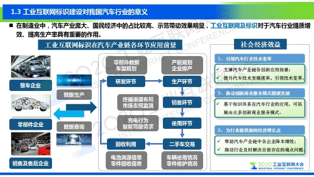 在2020工業(yè)互聯(lián)網(wǎng)大會(huì)“工業(yè)互聯(lián)網(wǎng)標(biāo)識(shí)”主題論壇上,中汽數(shù)據(jù)有限公司總經(jīng)理助理張鵬發(fā)表了題為《汽車行業(yè)工業(yè)互聯(lián)網(wǎng)標(biāo)識(shí)應(yīng)用》的演講,分享了標(biāo)識(shí)解析在汽車行業(yè)的推廣、場(chǎng)景和應(yīng)用價(jià)值。
