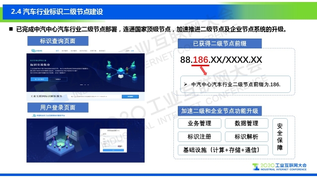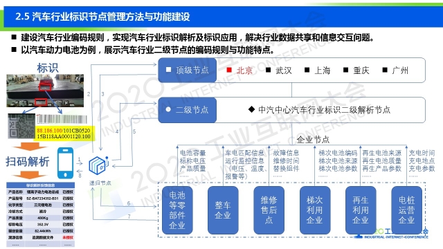 “標(biāo)識(shí)解析在汽車領(lǐng)域的應(yīng)用分別為運(yùn)營(yíng)大數(shù)據(jù)的動(dòng)態(tài)標(biāo)識(shí)管理(又稱“車聯(lián)網(wǎng)數(shù)據(jù)”)、電池的安全與故障預(yù)警、電池溯源管理、智能制造或者智慧工廠等四大場(chǎng)景。標(biāo)識(shí)體系目前將重點(diǎn)開展兩個(gè)方面的標(biāo)準(zhǔn):一是應(yīng)用指南類標(biāo)準(zhǔn),包括汽車行業(yè)智能制造標(biāo)識(shí)應(yīng)用指南、二級(jí)節(jié)點(diǎn)技術(shù)規(guī)范、企業(yè)節(jié)點(diǎn)技術(shù)規(guī)范等,均已處于立項(xiàng)階段;二是二級(jí)節(jié)點(diǎn)的建設(shè),包括建立汽車行業(yè)的標(biāo)識(shí)解析二級(jí)節(jié)點(diǎn),對(duì)接國(guó)家頂級(jí)節(jié)點(diǎn),連接各個(gè)企業(yè)的節(jié)點(diǎn),同時(shí)節(jié)點(diǎn)建設(shè)要服務(wù)于企業(yè),整合行業(yè)的相關(guān)資源,助力企業(yè)建立適合企業(yè)自身發(fā)展的定制化節(jié)點(diǎn)。”