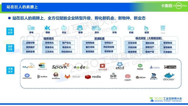 在2020工業(yè)互聯(lián)網大會“工業(yè)互聯(lián)網新技術”主題論壇上,海爾卡奧斯物聯(lián)生態(tài)科技有限公司云平臺架構師劉安發(fā)表題為《COSMOPlat在開源技術方向的探索和實踐》的演講,分享COSMOPlat在開源技術方向的探索實踐與思考建議。