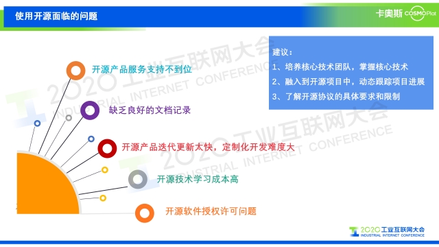 點擊下方鏈接,觀看演講視頻 專家說 “給大家一些在開源領域層面的建議和思考。第一,項目平臺實現賦能與管理,要提供開源項目代碼托管、備份、交流的工具,通過一些工具來完善并且促進我們開源項目的管理。第二,輔助開源項目管理,要定期關注運營報告,同時要制定社區(qū)和整個項目的管理規(guī)則。第三,發(fā)起開源項目,支持開源項目,要從制定標準、開發(fā)工具,一致性認證、性能測評等等方面來推進。最后,開源社區(qū)的聯(lián)合與推廣,要做到產學研各個層面的聯(lián)合。開源不僅僅是源碼的開源,更重要的是我們要做到生態(tài)的建設。只有這樣,才能實現開源的真正推廣與落地。 以下是演講PPT 敬請閱讀