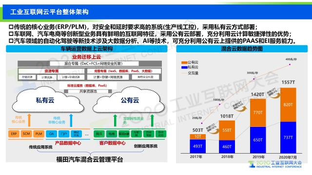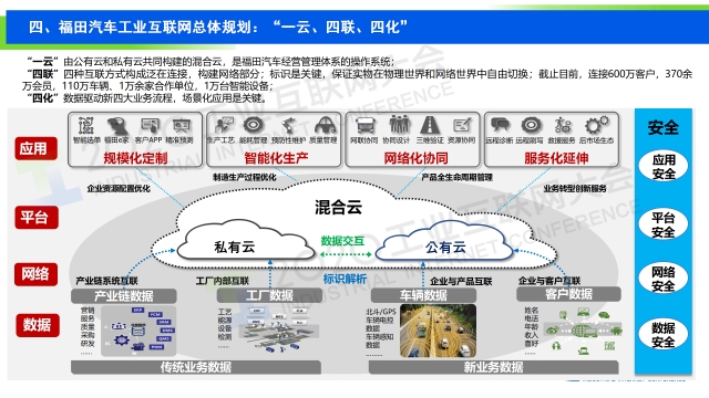 嘉賓演講視頻,請點擊下方鏈接觀看 專家說 “近幾年,商用車客戶結構和需求發生了很大變化,購車關注點也從價格向全生命周期運營成本TCO轉變。同時,個性化的定制需求逐漸增多,智能網聯技術變革,為商用車行業帶來了新的機遇,打開產品價值上升的通道,同時也為商用車市場競爭開創了新賽道。在此基礎上,福田汽車建起完善的“一云、四聯、四化”的工業互聯網頂層架構,指引福田汽車工業互聯網做到數據安全、網絡安全、平臺安全、應用安全,同時助力工業生產的過程優化、企業資源配置優化及汽車運行的智能化。未來,福田汽車將加強力度推進,將借助5G+工業互聯網模式,打造新的汽車產業生態,變革汽車產業體系,提升國產汽車品牌整體競爭力。”