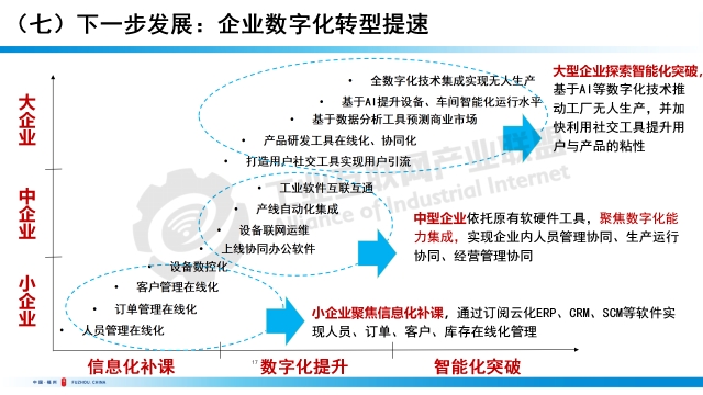 最后,余曉暉對下一步發(fā)展表示,未來企業(yè)將從信息化補課、數(shù)字化提升和智能化突破三個方向進(jìn)行轉(zhuǎn)型提速,最終實現(xiàn)大中小型企業(yè)共同向智能化升級方向發(fā)展。