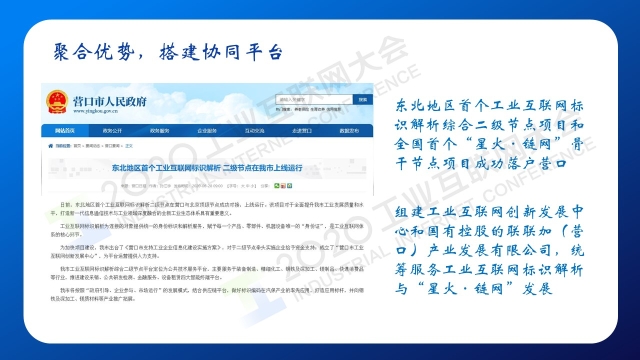 8月30日下午,在2020工業(yè)互聯(lián)網(wǎng)大會“工業(yè)互聯(lián)網(wǎng)標(biāo)識”主題論壇上,營口市市委副書記、營口市政府黨組書記、市長許桂清以《探索“鏈網(wǎng)協(xié)同”加快全面振興》為題演講,分享了工業(yè)互聯(lián)網(wǎng)+區(qū)塊鏈在營口產(chǎn)業(yè)轉(zhuǎn)型升級中的探索和應(yīng)用,以及持續(xù)深化“鏈網(wǎng)協(xié)同”,推動全產(chǎn)業(yè)鏈提質(zhì)增效升級,提速振興發(fā)展的未來規(guī)劃。