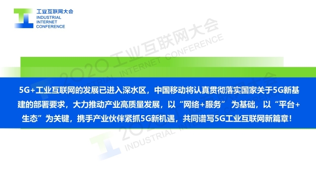 8月30日上午,在2020工業(yè)互聯(lián)網(wǎng)大會(huì)“5G與工業(yè)互聯(lián)網(wǎng)融合發(fā)展”主題論壇上,中國(guó)移動(dòng)通信集團(tuán)有限公司政企事業(yè)部副總經(jīng)理俞承志以《5G+工業(yè)互聯(lián)網(wǎng)加速融合 推動(dòng)產(chǎn)業(yè)高質(zhì)量發(fā)展》為題作演講,從網(wǎng)絡(luò)升級(jí)和應(yīng)用升級(jí)兩個(gè)方面,介紹了中國(guó)移動(dòng)5G+工業(yè)互聯(lián)網(wǎng)的應(yīng)用實(shí)踐。
