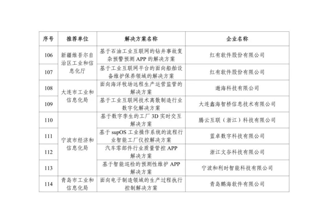為貫徹落實(shí)《國務(wù)院關(guān)于深化“互聯(lián)網(wǎng)+先進(jìn)制造業(yè)”發(fā)展工業(yè)互聯(lián)網(wǎng)的指導(dǎo)意見》,按照《工業(yè)和信息化部辦公廳關(guān)于開展2022年工業(yè)互聯(lián)網(wǎng)APP優(yōu)秀解決方案征集遴選工作的通知》(工信廳信發(fā)函〔2022〕269號)要求,經(jīng)單位推薦、專家評審、網(wǎng)上公示,確定了191個解決方案為2022年工業(yè)互聯(lián)網(wǎng)APP優(yōu)秀解決方案,現(xiàn)予以公布。請各地區(qū)、各有關(guān)單位加大支持力度,積極推動工業(yè)互聯(lián)網(wǎng)APP優(yōu)秀解決方案應(yīng)用推廣。附件:2022年工業(yè)互聯(lián)網(wǎng)APP優(yōu)秀解決方案名單