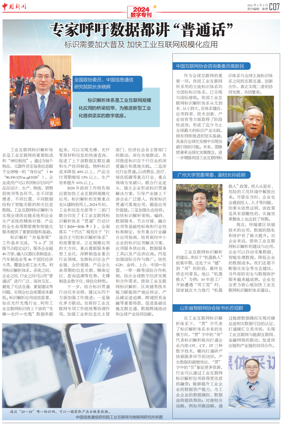 3月9日,《中國(guó)新聞》報(bào)推出全國(guó)兩會(huì)數(shù)字專刊,從工業(yè)互聯(lián)網(wǎng)標(biāo)識(shí)的蓬勃發(fā)展看“我們離數(shù)字中國(guó)還有多遠(yuǎn)”。報(bào)道指出“如今,數(shù)字中國(guó)建設(shè)已經(jīng)駛?cè)肟燔嚨溃怨I(yè)互聯(lián)網(wǎng)標(biāo)識(shí)解析體系和“星火·鏈網(wǎng)”為代表的數(shù)字基礎(chǔ)設(shè)施,作為數(shù)字中國(guó)建設(shè)的重要內(nèi)容,正在加速形成新質(zhì)生產(chǎn)力,貫通千行百業(yè),賦能高質(zhì)量發(fā)展。”標(biāo)識(shí)“貫通”勢(shì)在必行,規(guī)模化應(yīng)用的發(fā)展離不開產(chǎn)業(yè)生態(tài)的共同努力。