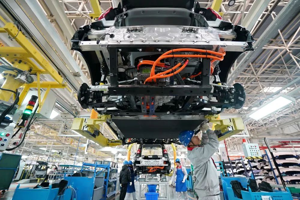 奇瑞新能源汽車股份有限公司石家莊分公司的工人在總裝車間生產線上工作(2024年3月19日攝)。新華社記者牟宇 攝