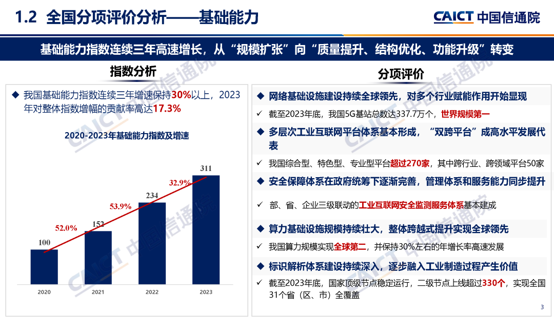 (一)基礎能力指數連續(xù)三年高速增長,從“規(guī)模擴張”向“質量提升、結構優(yōu)化、功能升級”轉變