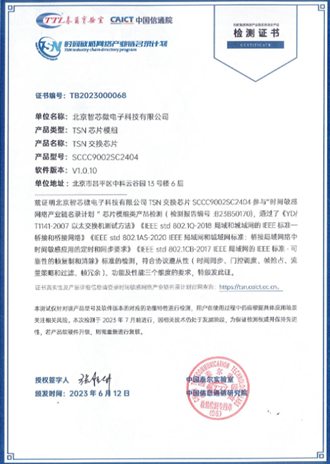 2021年9月,北京智芯微電子科技有限公司研發(fā)的TSN交換機(jī)在互聯(lián)網(wǎng)與工業(yè)融合創(chuàng)新工信部重點(diǎn)實(shí)驗(yàn)室順利通過“TSN產(chǎn)業(yè)鏈名錄計(jì)劃”產(chǎn)品測試,獲得交換機(jī)類測試證書,成為第一批加入產(chǎn)業(yè)鏈名錄計(jì)劃的產(chǎn)品,2023年6月,同系列交換芯片也順利通過產(chǎn)品評測,獲得芯片模組類測試證書,成功加入TSN產(chǎn)業(yè)鏈名錄。