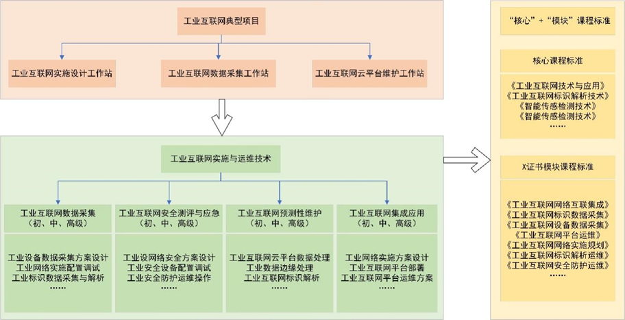 重構“核心+模塊”課程標準和教學內容。選取典型企業(yè),圍繞制造業(yè)在“智改數轉”中規(guī)劃設計、工程實施、運行維護、數據服務、服務應用等典型崗位,通過開展“工業(yè)互聯(lián)網實施與運維”典型項目,提煉典型技術技能模塊,建設“項目化”課程,實現課程教學與“X”證書相融合的個性化人才培養(yǎng)培訓。實施課程與教材改革計劃,聯(lián)合龍頭企業(yè)打造新形態(tài)經典教材,開發(fā)社會認可度高的“X”認證證書,開發(fā)新型活頁式、工作手冊式教材、雙語教材。