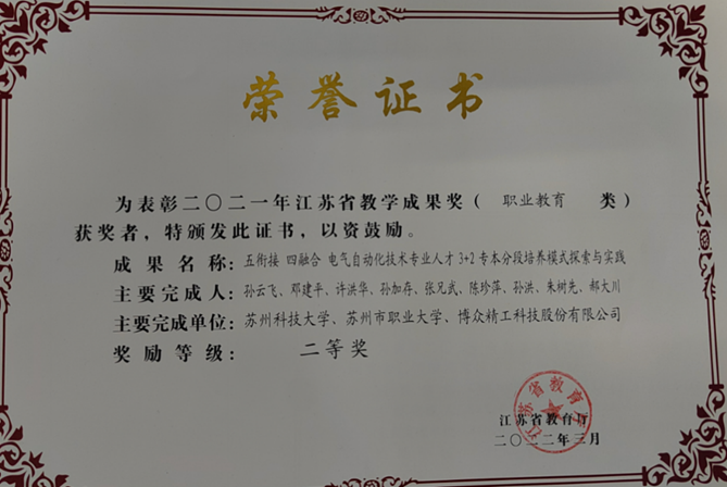 (1)開設工業(yè)互聯(lián)網技術專業(yè),進行專業(yè)人才培養(yǎng)。基地責任單位蘇州市職業(yè)大學從2019年開始招生工業(yè)互聯(lián)網技術專業(yè)的學生,目前已經連續(xù)招生4屆學生,畢業(yè)生供不應求。與蘇州科技大學聯(lián)合進行專本3+2人才培養(yǎng),雙方以工業(yè)互聯(lián)網方向為培養(yǎng)目標,聯(lián)合工業(yè)互聯(lián)網企業(yè)簽訂三方合作協(xié)議,進行師資互聘、實踐基地共享,共同構建“五銜接 四融合”電氣自動化技術專業(yè)人才3+2專本分段培養(yǎng)模式,相關教學成果獲江蘇省教學成果2等獎,共同建立的實踐基地獲省產教融合實訓平臺。