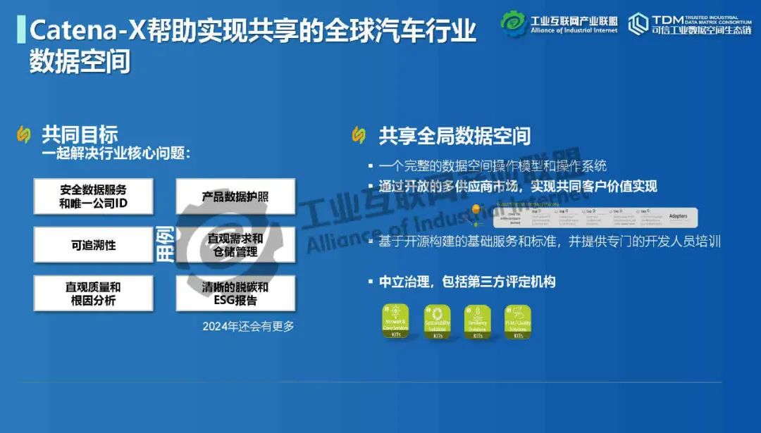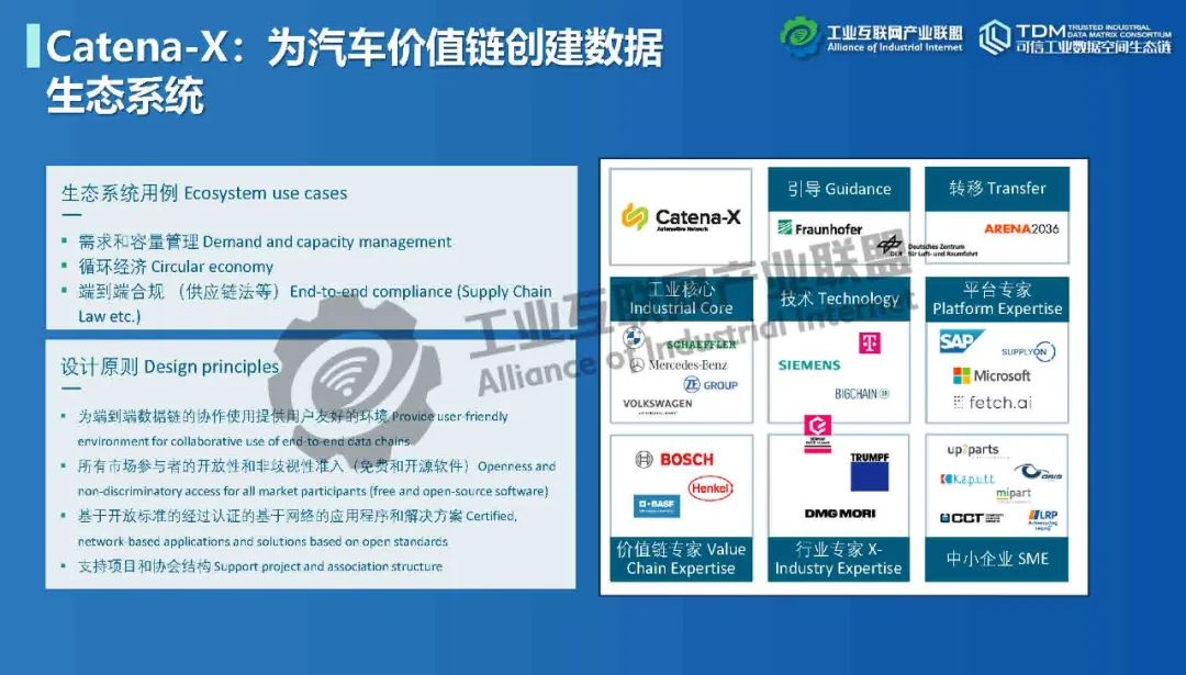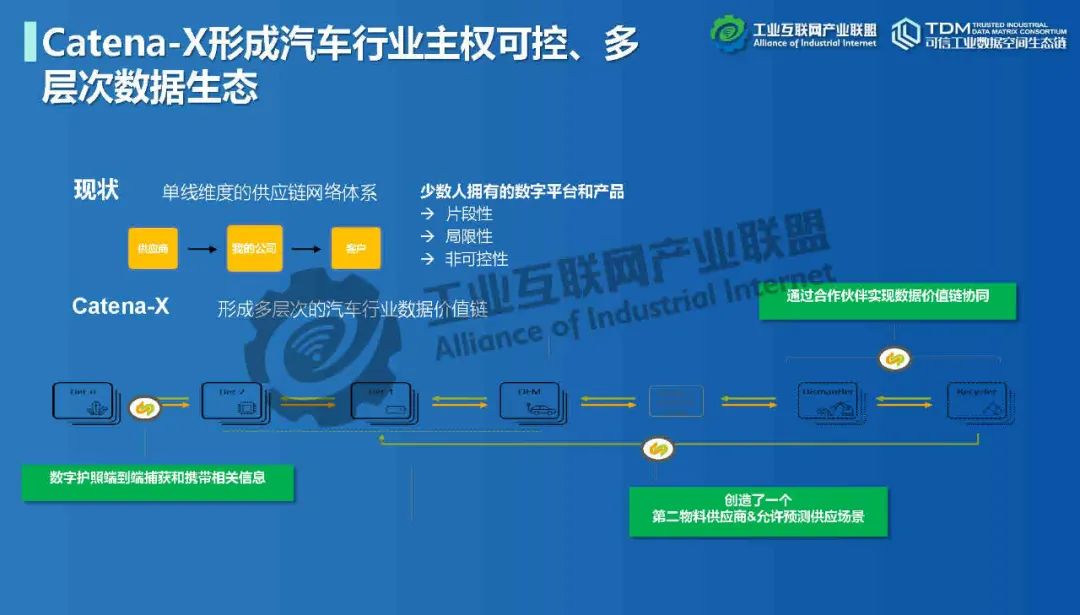 本期為您帶來由德國弗勞恩霍夫協(xié)會中國代表處代表?xiàng)铞?/strong>帶來的《國際視野:Catena-X數(shù)據(jù)空間在汽車領(lǐng)域落地》。介紹了歐洲對數(shù)據(jù)空間的需求和定義,數(shù)據(jù)空間標(biāo)準(zhǔn)化、生態(tài)發(fā)展情況,以及德國弗勞恩霍夫協(xié)會與中國信息通信研究院在數(shù)據(jù)空間領(lǐng)域開展的深入合作。Catena-X旨在形成汽車行業(yè)主權(quán)可控多層次數(shù)據(jù)生態(tài),為汽車價值鏈創(chuàng)建數(shù)據(jù)生態(tài)系統(tǒng),構(gòu)建全球汽車行業(yè)全價值鏈數(shù)據(jù)生態(tài)合作的宏大愿景。