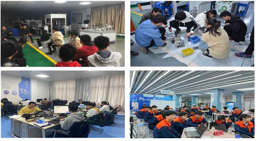 (二)實(shí)訓(xùn)活動的開展,主要以工業(yè)互聯(lián)網(wǎng)技術(shù)所對接的相關(guān)產(chǎn)業(yè)鏈中某具體生產(chǎn)或經(jīng)營工作任務(wù)為載體,依托學(xué)?!坝旮麑W(xué)院”項(xiàng)目式人才培養(yǎng)項(xiàng)目開展人才培養(yǎng),通過校企合作開發(fā)課崗銜接類項(xiàng)目,組織專業(yè)學(xué)生開展項(xiàng)目研究和建設(shè),并實(shí)施項(xiàng)目化教學(xué)。根據(jù)市場對專業(yè)人才技能需求,更新課程教學(xué)內(nèi)容,開發(fā)適合專業(yè)人才培養(yǎng)方案的必修或選修類課證融合課程,校企雙師組織實(shí)施培訓(xùn)活動,專項(xiàng)培訓(xùn)學(xué)時40學(xué)時。學(xué)生培訓(xùn)活動如下圖所示。