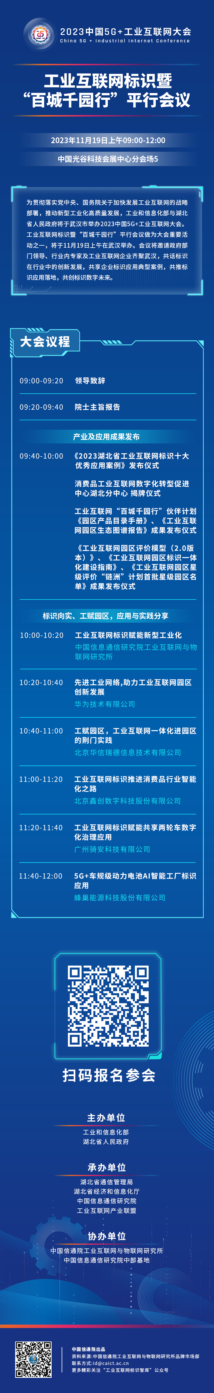 議程速覽 | 2023中國5G+工業互聯網大會工業互聯網標識暨“百城千園行”平行會議
