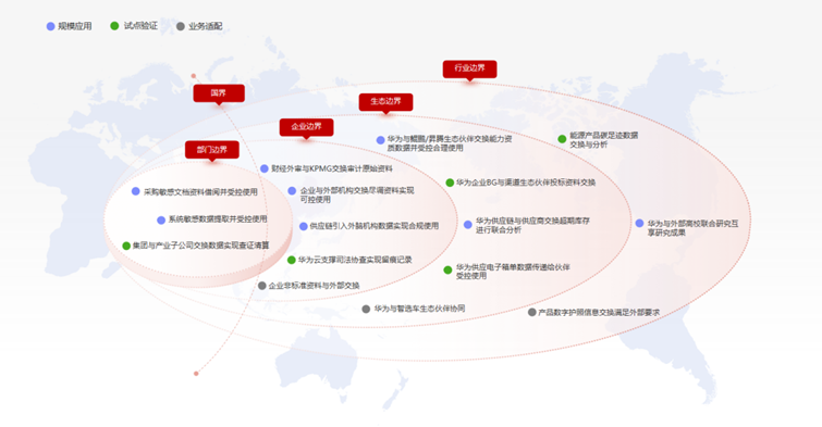 華為公司業(yè)務(wù)分布在170多個(gè)國(guó)家和地區(qū),隨著數(shù)字化的發(fā)展,華為需要通過數(shù)據(jù)的高效聯(lián)接、跨域使用控制、安全流通支撐復(fù)雜業(yè)務(wù)的全球協(xié)同。基于此,華為希望充分融合企業(yè)內(nèi)外部數(shù)據(jù),基于清算促進(jìn)數(shù)據(jù)價(jià)值的量化和分配,形成數(shù)據(jù)產(chǎn)生、交換、消費(fèi)的良性循環(huán),充分釋放數(shù)據(jù)價(jià)值。