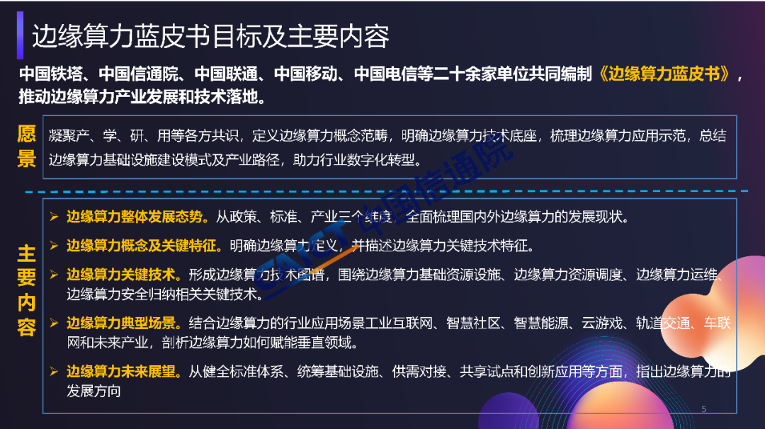 本藍皮書在編寫過程中得到了工業互聯網產業聯盟、邊緣計算產業聯盟、中國通信標準化協會邊緣計算產業發展及技術標準推進委員會等大力支持。下一步,我們將聯合產業各方積極推進邊緣算力標準體系建設,加速邊緣算力應用試點,完善邊緣算力產業生態,推動邊緣算力創新發展。