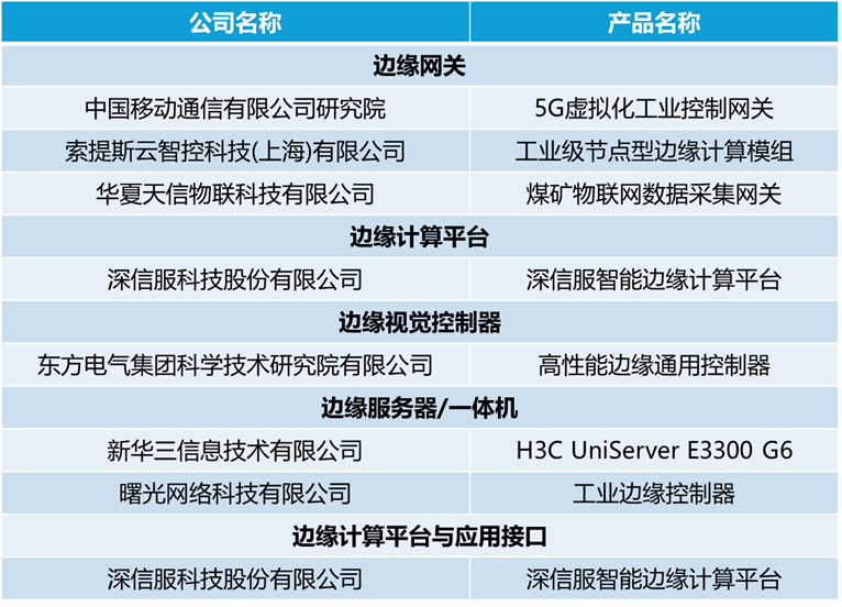 第五批通過“邊緣計算標(biāo)準(zhǔn)件計劃”測試產(chǎn)品名單(排名不分先后)