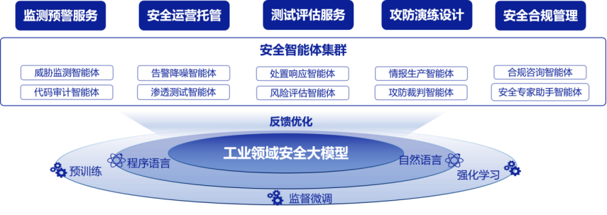當(dāng)前,大模型、人工智能技術(shù)正在加速向各行各業(yè)賦能,帶動(dòng)傳統(tǒng)產(chǎn)業(yè)向智能化、數(shù)字化深度演進(jìn),與此同時(shí),工業(yè)領(lǐng)域網(wǎng)絡(luò)和數(shù)據(jù)安全形勢(shì)日益復(fù)雜,傳統(tǒng)技術(shù)手段難以滿足現(xiàn)階段安全防護(hù)需求。在此背景下,中國(guó)信息通信研究院依托工業(yè)互聯(lián)網(wǎng)安全技術(shù)試驗(yàn)與測(cè)評(píng)工業(yè)和信息化部重點(diǎn)實(shí)驗(yàn)室,基于工業(yè)領(lǐng)域網(wǎng)絡(luò)安全和數(shù)據(jù)安全垂域大模型,結(jié)合多年安全領(lǐng)域的知識(shí)經(jīng)驗(yàn),打造了集安全監(jiān)測(cè)、滲透測(cè)試、安全合規(guī)管理等多種能力于一體的工業(yè)領(lǐng)域安全智能體公共服務(wù)平臺(tái)(以下簡(jiǎn)稱平臺(tái)),旨在為工業(yè)企業(yè)構(gòu)筑起一道“智能感知、主動(dòng)防御”的安全屏障。