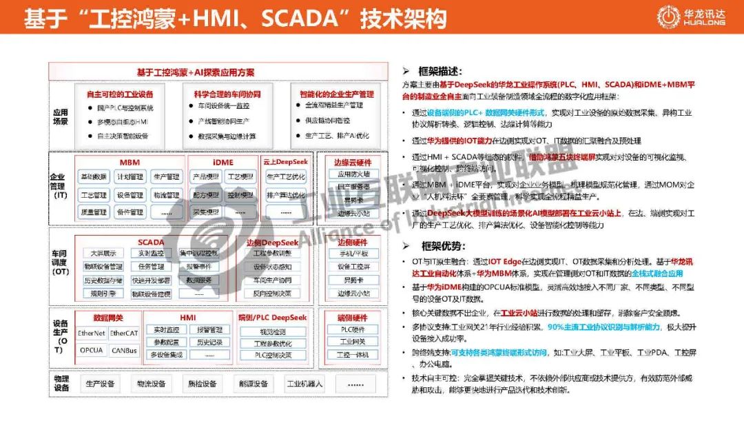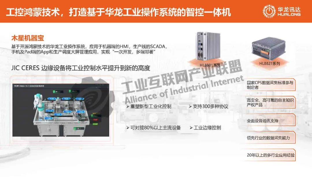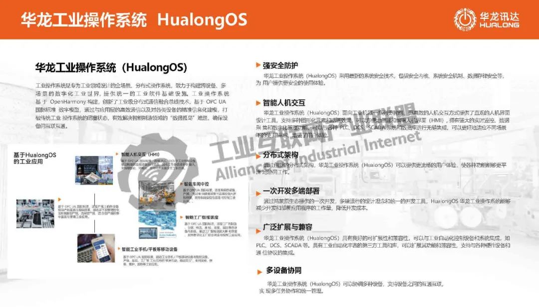 華龍工業操作系統是專為工業領域設計的全場景、分布式操作系統,致力于構建跨設備、多場景的數字化工業世界,提供統一的工業軟 件基礎設施。華龍工業操作系統基于 OpenHarmony構建,創新了工業級分布式通信融合總線技術,基于OPC U國際標準 數字模型,通過與應用層的高效通信以及對各類設備的精準信息化建模,打破傳統工業操作系統的閉塞狀態,有效解決智能制造領域的“數據孤島”難題,確保設備間互聯互通。