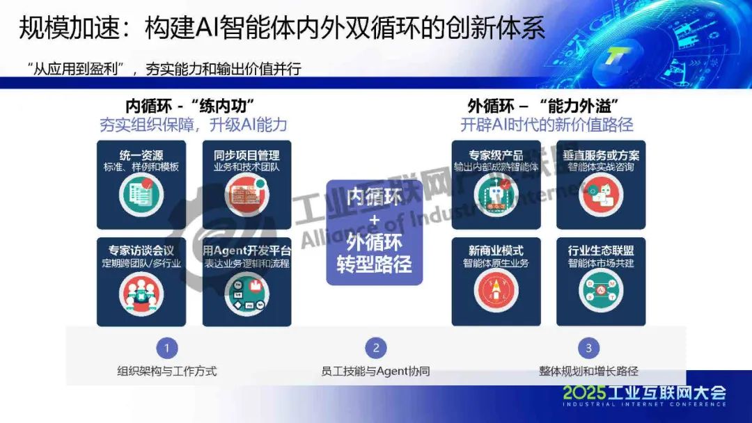 第三,專家知識AI化人類創造力,持續賦能整個團隊(包括人類員工和AI Agent智能體)。高質量、結構化、且與業務場景深度融合的企業知識,是AI Agent智能體能夠精準理解意圖、制定有效策略、并最終交付卓越工作成果的“最強引擎”。利用好這些知識,是實施概念驗證和規模化應用AI智能體的重要前提,推動加速構建AI智能體內外雙循環的創新體系。