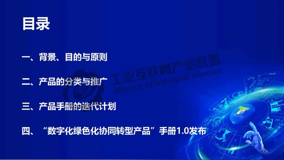 《數字化綠色化協同轉型產品手冊1.0》的四個原則:一是國家政策導向:圍繞國家政策導向和細分行業發展規律組織相應的產品/服務。二是專家評審機制:入庫產品/服務必須經過專家團隊評審通過。三是動態迭代改進:在實踐中,動態迭代改進產品/服務體系建設。四是公益與市場結合:公益性推進與市場化實現結合。