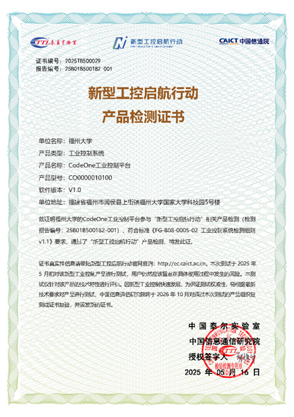 經過中國信息通信研究院集中測試,福州大學工業(yè)自動化控制技術與信息處理福建省高校重點實驗室自主研發(fā)的CodeOne工業(yè)控制平臺,憑借圖形無代碼編程架構與多品牌PLC無縫兼容的核心優(yōu)勢,順利通過本次“新型工控啟航行動”產品測試。目前CodeOne平臺已在新能源、電力、化工、機械、紡織、家具、電池、市政等多個行業(yè)實現規(guī)模化應用,成功替代國外工控系統,推動國產裝備在汽車制造、新能源等高端技術領域的自主化突破。