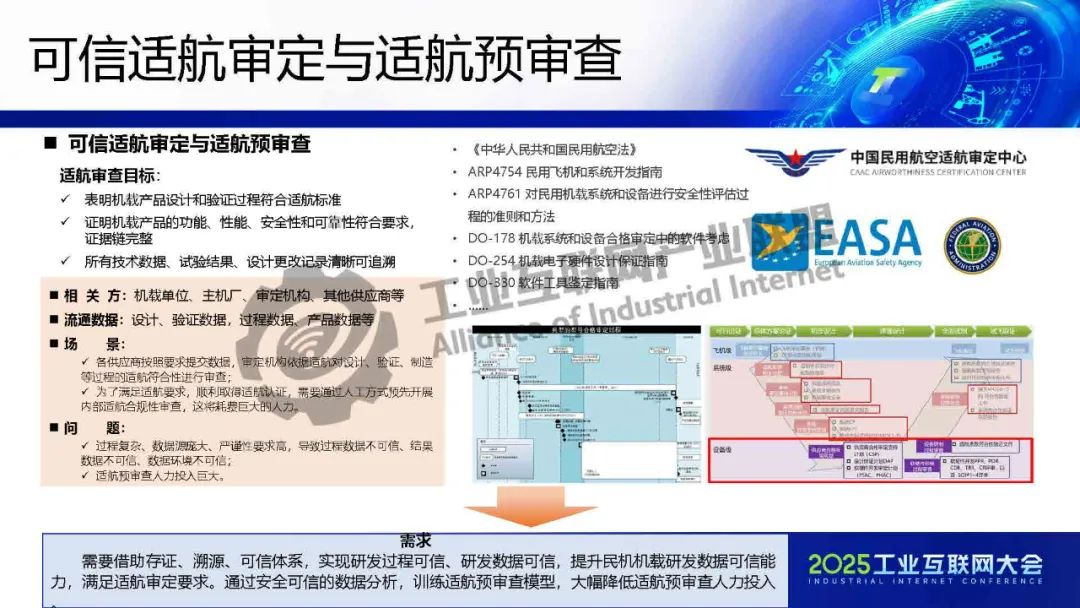 可信適航審定與適航預(yù)審查:需要借助存證、溯源、可信體系,實現(xiàn)研發(fā)過程可信、研發(fā)數(shù)據(jù)可信,提升民機(jī)機(jī)載研發(fā)數(shù)據(jù)可信能力,滿足適航審定要求。通過安全可信的數(shù)據(jù)分析,訓(xùn)練適航預(yù)審查模型,大幅降低適航預(yù)審查人力投入。