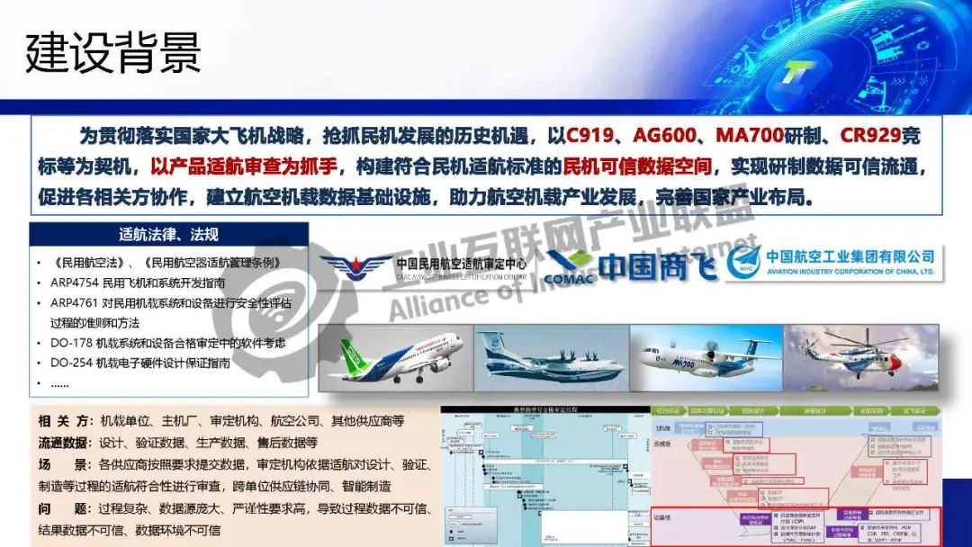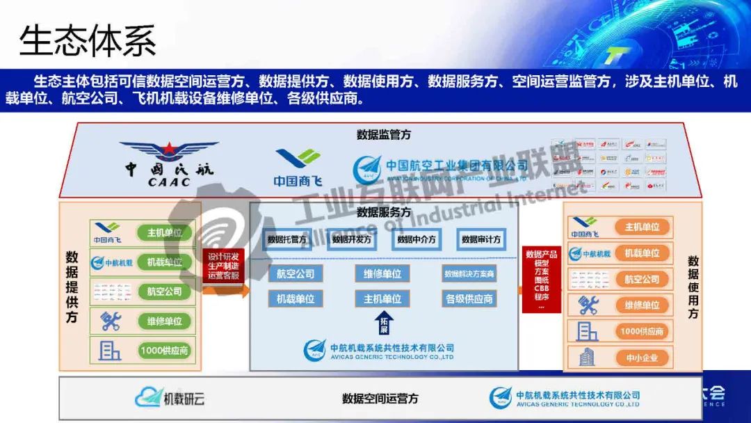 周振興介紹,為貫徹落實國家大飛機(jī)戰(zhàn)略,搶抓民機(jī)發(fā)展的歷史機(jī)遇,以C919、AG600、MA700研制、CR929競標(biāo)等為契機(jī),以產(chǎn)品適航審查為抓手,構(gòu)建符合民機(jī)適航標(biāo)準(zhǔn)的民機(jī)可信數(shù)據(jù)空間,實現(xiàn)研制數(shù)據(jù)可信流通,促進(jìn)各相關(guān)方協(xié)作,建立航空機(jī)載數(shù)據(jù)基礎(chǔ)設(shè)施,助力航空機(jī)載產(chǎn)業(yè)發(fā)展,完善國家產(chǎn)業(yè)布局。航空機(jī)載可信數(shù)據(jù)空生態(tài)主體包括可信數(shù)據(jù)空間運(yùn)營方、數(shù)據(jù)提供方、數(shù)據(jù)使用方、數(shù)據(jù)服務(wù)方、空間運(yùn)營監(jiān)管方,涉及主機(jī)單位、機(jī)載單位、航空公司、飛機(jī)機(jī)載設(shè)備維修單位、各級供應(yīng)商。