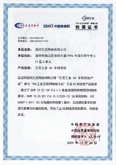 近日,深圳艾靈網絡有限公司的AI5GS產品順利通過第一批“5G+工業互聯網”鑄鏈計劃產品測試,測試內容涵蓋Ethernet會話、5G LAN、業務傳輸時延、可靠性、工業網絡業務能力多個方面。